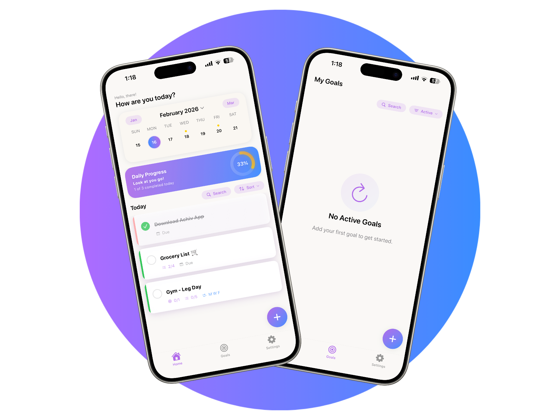 Achiv is the task and goal-tracking app designed for people who want to get things done without the overwhelm. Capture tasks, organize your day, and set meaningful goals that actually connect to the work you're doing, then watch small daily wins turn into real, visible progress.